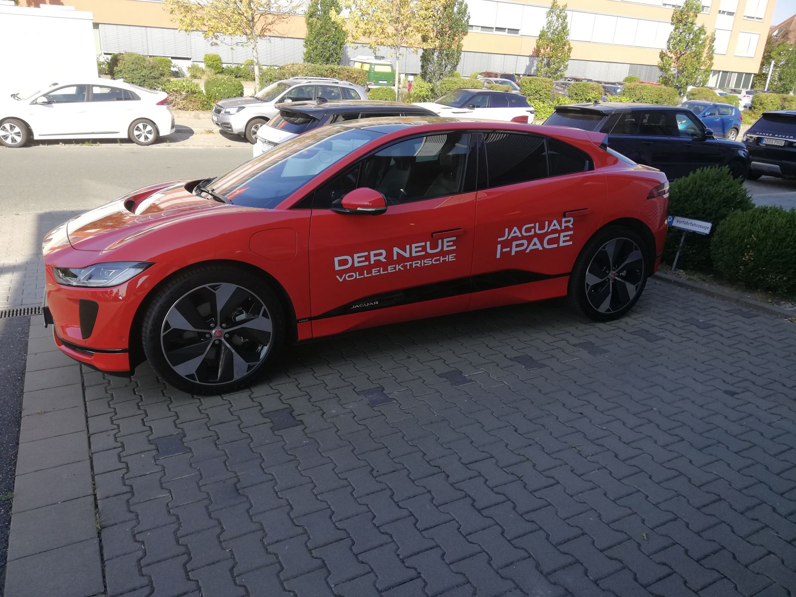 Bei strahlendem Sonnenschein und 38 °C sollte die erste Probefahrt des I-Pace zum besonderen Vergnügen werden. Dankenswerterweise hat uns das das Autohaus Road Star in Nürnberg ermöglicht.